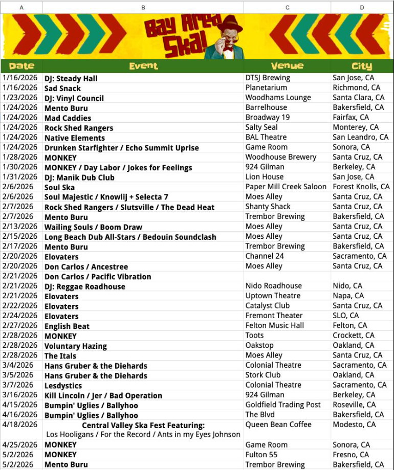 Bay Area Ska Calendar